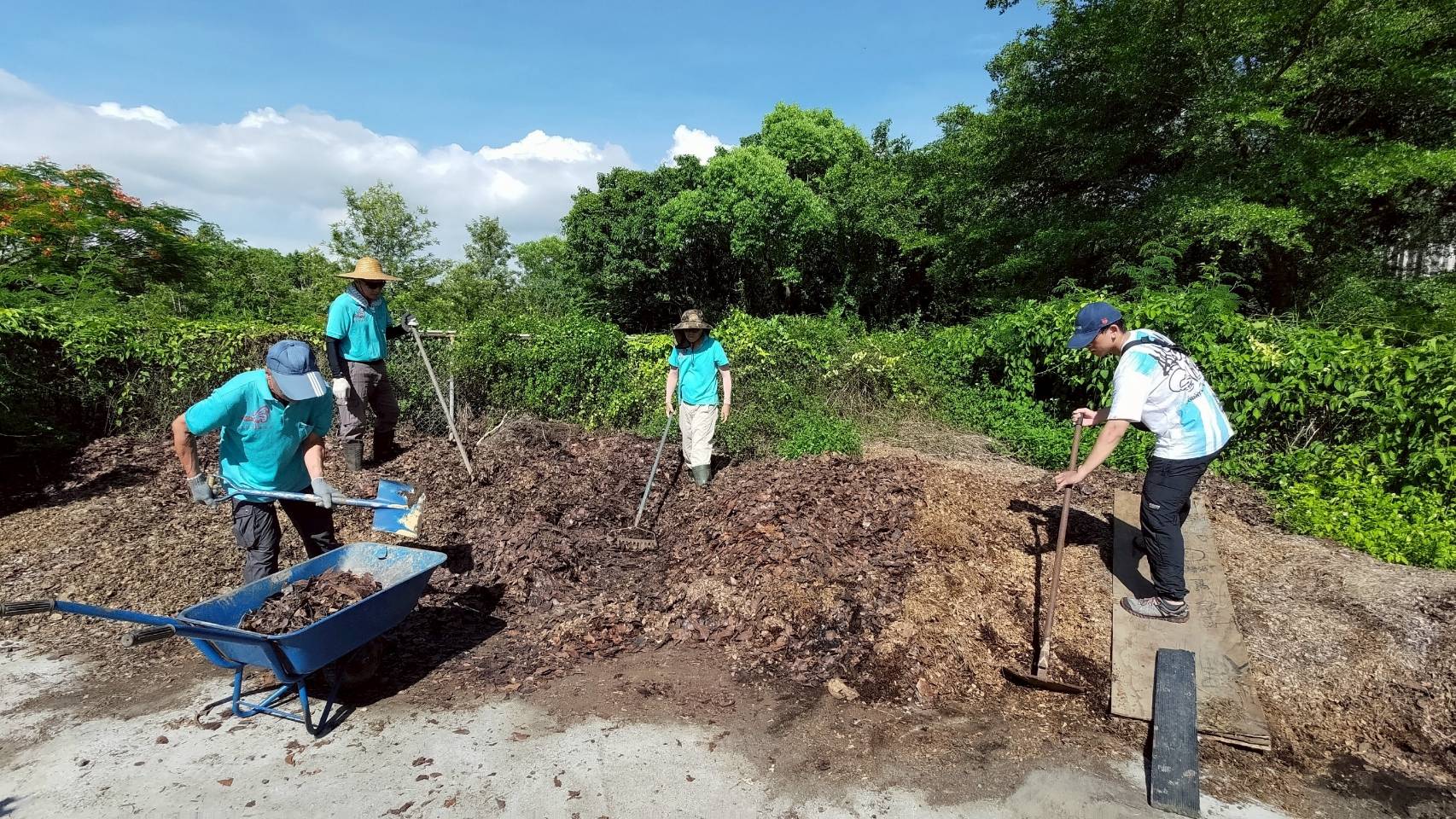 經過一段時間之堆置,加入適當之水分,並配合校內相關工程有挖土機進場時協助翻堆,腐熟之堆肥則成為校內最佳的有機肥料,也成為昆蟲產卵的最愛,常可在堆肥中挖出雞母蟲。